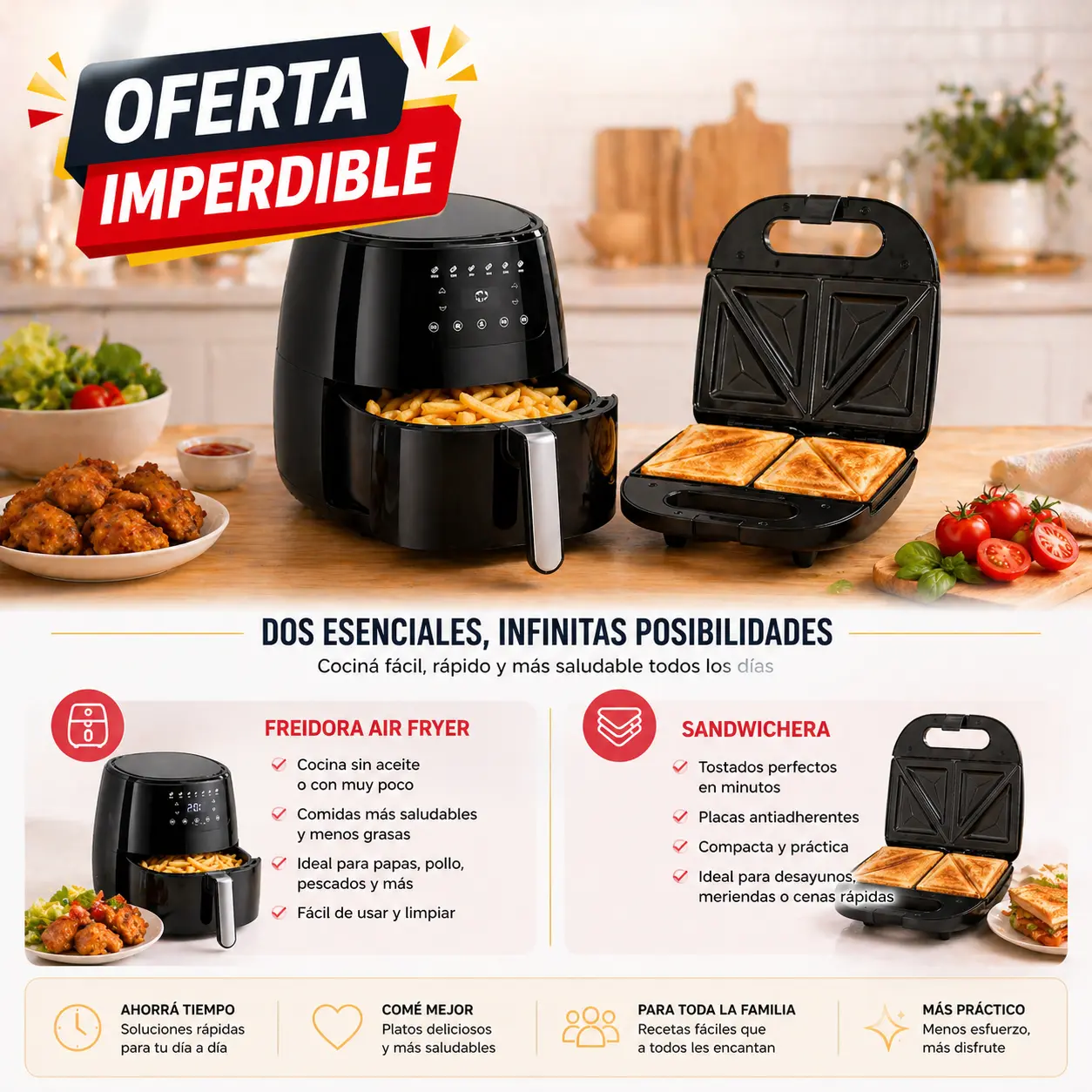 ✔ Menos tiempo en la cocina